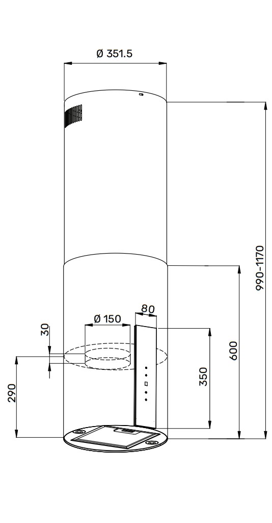 Схема встраивания для кухонной вытяжки Kuppersberg MOTUBA 35 X