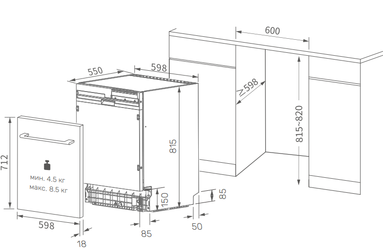 Схема встраивания для посудомоечной машины Kuppersberg GSD 6030