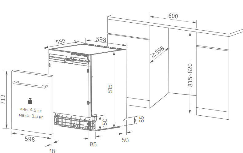 Схема встраивания для посудомоечной машины Kuppersberg GSD 6020