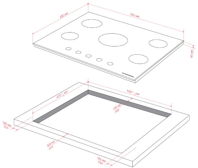 Схема встраивания для варочной панели Kuppersberg FS 76 B