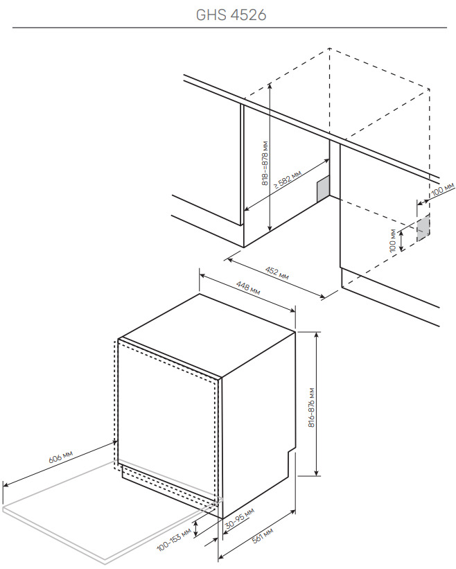 Схема встраивания для посудомоечной машины Kuppersberg GHS 4526