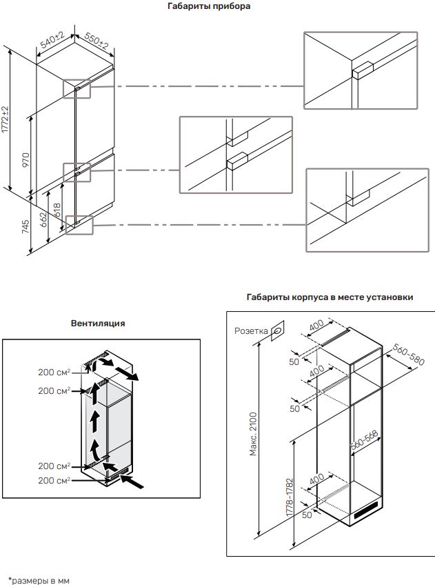Схема встраивания для холодильника Kuppersberg RBN 1765
