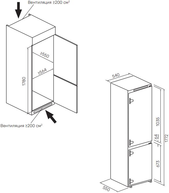 Схема встраивания для холодильника Kuppersberg RBN 1762