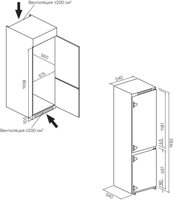 Схема встраивания для холодильника Kuppersberg RBN 1962