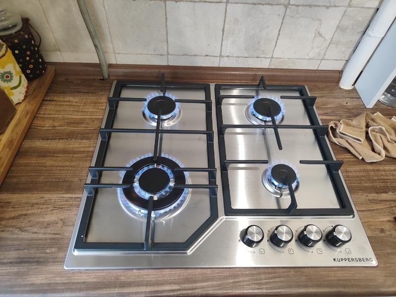 Понравилась газовая панель из нержавеющей стали: 4 конфорки, WOK, электроподжиг и газконтроль — удобно и практично.